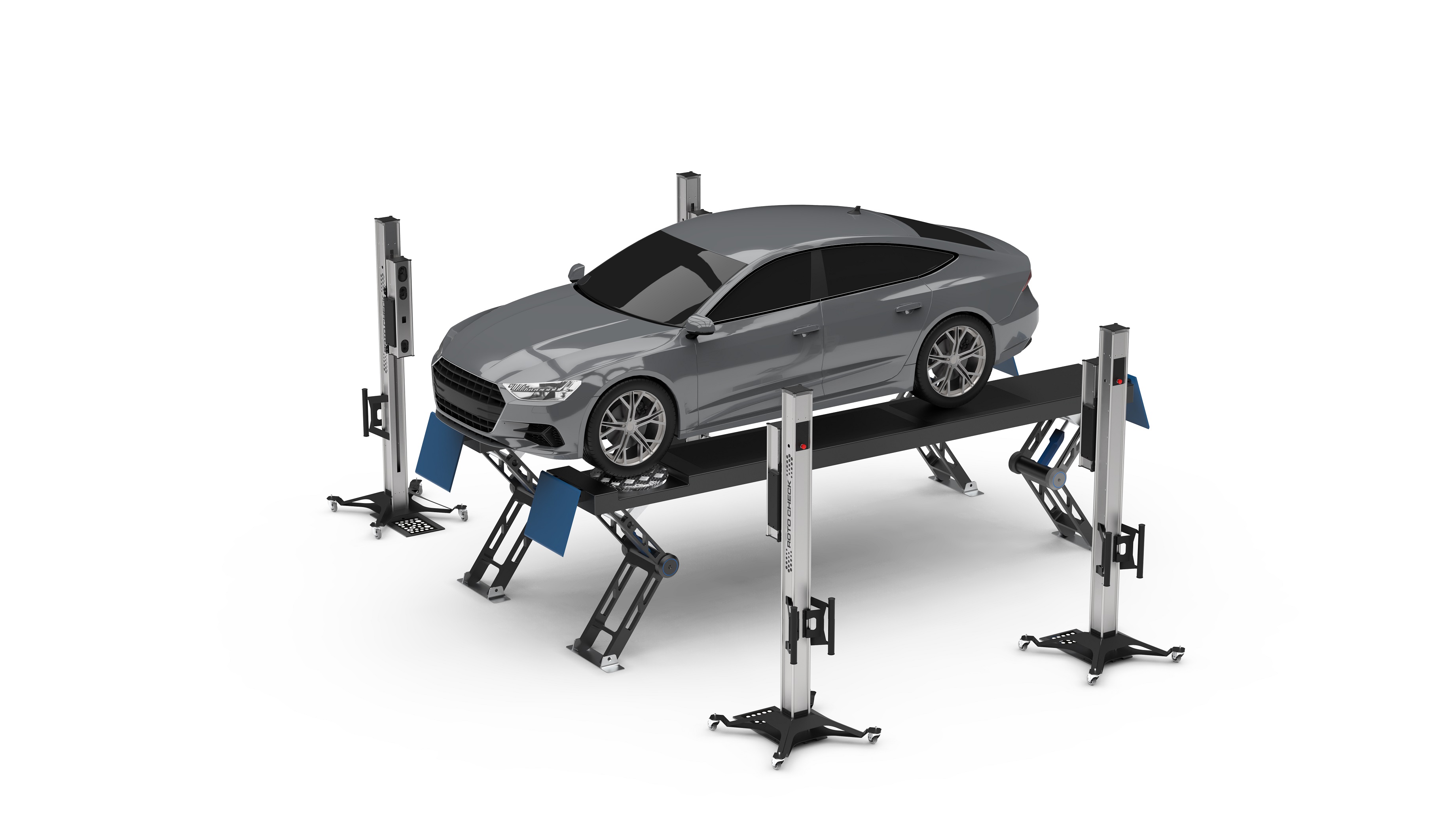 ROTO CHECK offre numerosi vantaggi, tra cui una maggiore stabilità nella lettura dei valori di campanatura e convergenza, una velocità di rilevazione ottimizzata che riduce significativamente i tempi necessari per le operazioni di misurazione e regolazione rispetto ai sistemi tradizionali e una maggiore comodità nella regolazione sul ponte grazie all’unità che segue la ruota senza vincoli di altezza.